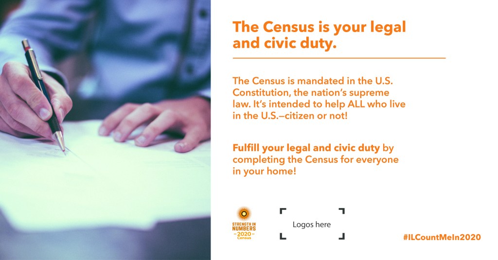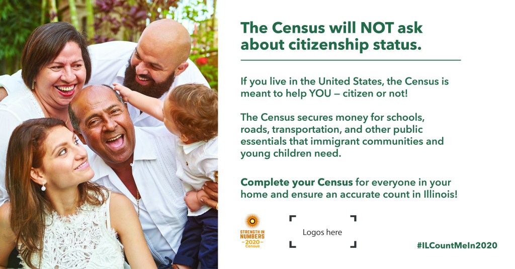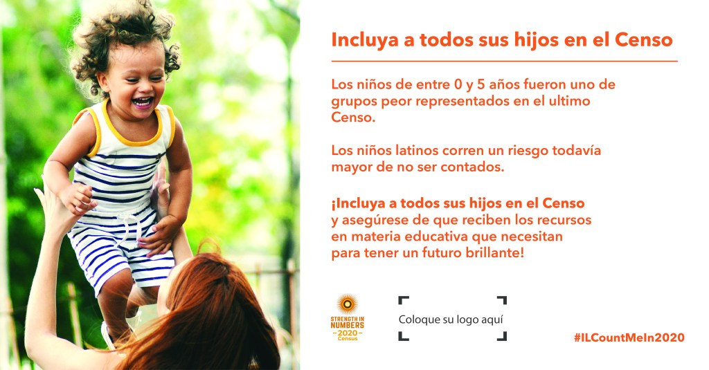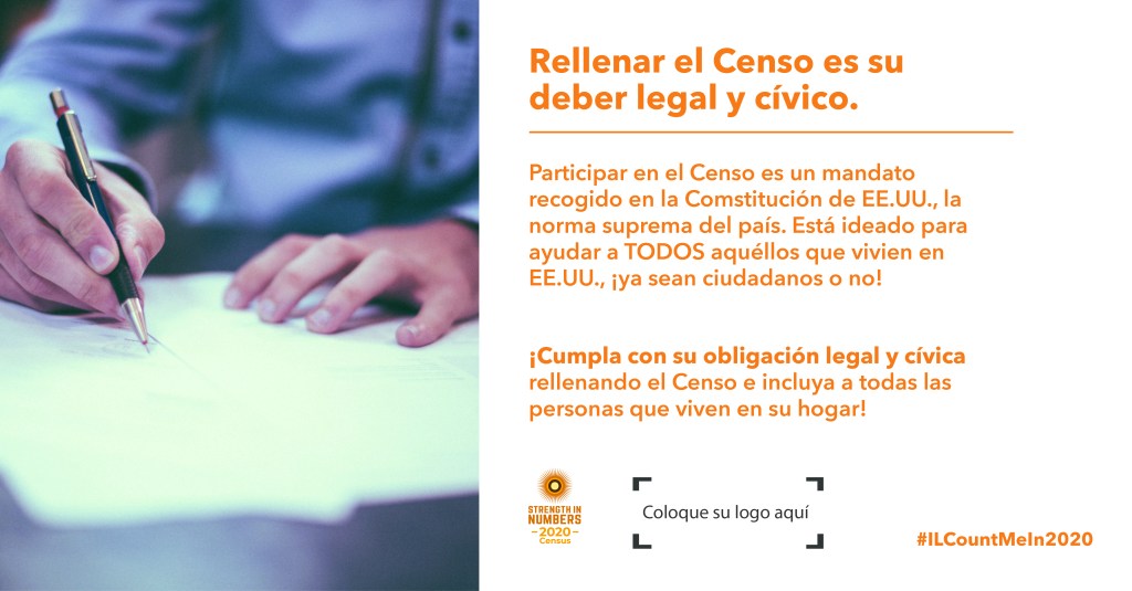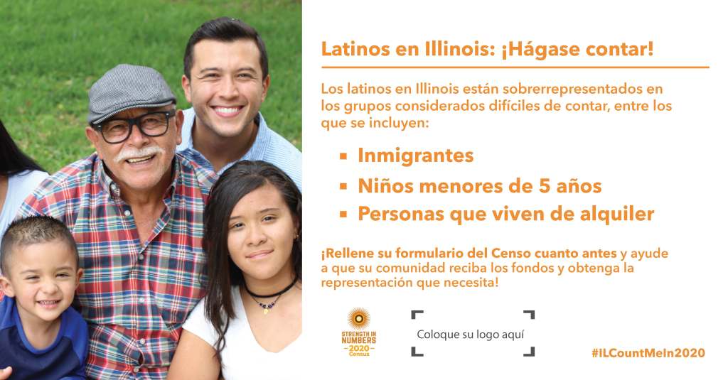 Confidentiality (English, Regular)Latinos in Illinois (English, Customizable)Latinos de Illinois (Español, Normal)No Hay Pregunta Sobre Ciudadanía (Español, Personalizable)Count All Your Kids (English, Regular)Census is the Law (English, Customizable)Deber Legal Censo (Español, Normal) Maneras de Responder (Español, Personalizable)